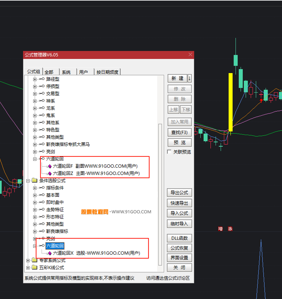 六道轮回指标包含一个主图一个副图和一个选股;